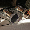 | Lichtanlage in Eigenbau-Case mit vier bremsbaren Rädern Showtec - Showbar 4 zwei Lichtbalken mit je 4x PAR 56 can Funktion autonom programmierbar |
