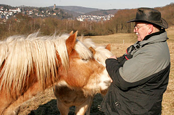 Peters Pferde II: Warino & Nando zwei Haflinger auf der Koppel, am 2. Februar 2012 Fast zehn Monate nach dem ersten Fototermin bot ein herrlicher Dauerfrost-Tag Anfang Februar mit hellstem Sonnenschein eine zweite gute Gelegenheit für ein aktuelles, visuelles Protokoll der beiden Hübschen. Siehe Peters Pferde II |