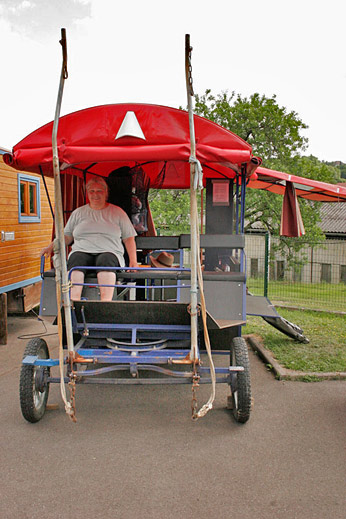 Wer sich bis hier her durch die "Umkleidekabine für Comtois-Kutschpferde" „gekämpft“ hat, wird bemerkt haben, dass ein Urlaub im Langsam-Mobil mit lebendem Motor schon vor seinem „eigentlichen“ Beginn alles andere als eine „All inclusive Premium“-Veranstaltung mit Rundum-Versorgung für passive, faule und f.... Urlaubs-Larven ist. Um einen Teil der positiven Bilanz der noch vor uns liegenden Tage vorweg zu nehmen: Uns erwartet ein Erlebnis, das intensives Mit-Tun voraussetzt. • "Gewusst wie" beim Umgang mit der vor-"auto (selbst?!)"mobilen Technik. • Aufmerksam verantwortungsvolles Tätig-Sein in ungewohnter Umgebung, Sprache und Gewerk über den ganzen Tag. • Füttern und Tränken des Pferdes. • So gut es eben geht, „mit dessen Augen sehen lernen“: • Vergraulen blutrünstiger Insekten. • Finden der Route zum Etappenziel. • Kommunikation mit 100 % neuzeitlichen Verkehrs- Teilnehmern. Wir erlebten fast ausnahmslos rücksichtsvolle und freundliche!, lachende Menschen ..., ... bis der Biomotor Pferd für die Nacht sicher auf einer Weide „geparkt“ ist. Aber, sooo kompliziert, wie es nun vielleicht erschienen sein mag, ist Zigeunerwagen Fahren denn doch auch wieder nicht. Wenn man sich mit Begeisterung auf diesen ausgewachsenen Anachronismus 2.0 einlässt, kann gerade sein allerdings notwendiger "Überbau" das Elixier reinster geistiger Erholung sein. Besonders für uns zwei Pensionisten war es ein erfrischendes Alternativ-Programm zur Struktur-Einfalt von Ruheständler-Tagen zwischen Bett, Klo, Küchentisch, Computer, Fernseher und zurück. Zu allem Überfluss und als edle Dreingabe findet das Ganze auch noch in der Kulisse einer herrlichen Landschaft statt, die im Wandertempo vorbeizieht und uns mehr als genüsslich Zeit lässt, alle, gerade auch die kleinsten und unscheinbarsten Eindrücke zu „erfahren“, zu „begreifen“, mit allen Sinnen auf- und "wahr"zunehmen einfach wunderbar. Hätten wir’s nicht gemacht, wir müssten uns in den A.... gebissen haben! Nach dieser, zugegeben, schon etwas - wenn, dann aber eu - stressenden Einführung in das archaische Handwerk des Kutschers, lassen wir uns im „Chez Colette“, dem Restaurant im ehemaligen Kuhstall der Station, ein leckeres Menü schmecken: Schaffleisch mit Gratin, Salat und Dessert, zubereitet von Colette Grandgirard. An jeder Station der Rundreise kann übrigens, wer möchte, diesen „Table d'Hôtes“ bestellen, ein individuell vom jeweiligen Gastgeber gestaltetes und meist (wenn es kein Restaurant ist) mit ihm gemeinsam eingenommenes Menü, zum Einheitspreis von 14 Euro. Ein kleiner Spaziergang durchs Dorf beschließt diesen ereignisreichen Tag. Fontenois-la-Ville ist eine Gemeinde, die in diesem Jahr den Titel „Villes et Villages Fleuris“ (Beblümte Städte und Dörfer) immerhin mit einer von drei Blumen/Sterne führen darf. Um diese Auszeichnung erneut zu erhalten, diesmal vielleicht sogar mit zwei Blumen, bepflanzen Frauen schmale Beete zwischen Hauswänden, Grundstücksmauern und dem Bürgersteig mit unzähligen Blumen, die durch stationäre Tropf-Berieselungs(?)-Schläuche bewässert werden. Ansonsten macht der Ort mit etwas über 150 Einwohnern einen verschlafen tagträumenden Eindruck, der mich an Jacques Tatis Film „Jour de fête“ („Tatis Schützenfest“) erinnert. Francois et la "rapidité américaine" Über sechzig Jahre nach seiner Entstehung in der französischen Provinz gerät die Erinnerung an ihn aber leider nicht mehr so leichten Herzens, unschuldig verzaubernd, wie ihn sein Erzähler umrahmt, vielmehr mit unverhohlenen Zeichen des Niedergangs - fast jedes zweite Haus „ziert“ das Schild „à vendre“, zu verkaufen. Der Durchreisende aus dem Billiglohn- Wirtschafts- Wunder- Deutsch- Land, der (noch?) nicht selber in gleicher Weise betroffen ist, "genießt" den morbiden Schauer, den das Echo ihrer letzten Bewohner noch immer deutlich vernehmbar durch die geschlossenen Jalousien über seinen Rücken laufen lässt. Globale Arbeit"geber"-Nomaden, mit ihnen das profitgeile Kapital, wandern aus, dem Lohngefälle folgend. Hier fehlt das Geld zum Leben. Die Jungen haben keine beruflichen Perspektiven. Infrastruktur bricht weg. Landflucht. Strukturwandel, das ewige Elend der Industriellen Revolution. Es müssten aber doch noch ein paar humane Ideen zu finden sein, sagt der Träumer. Vielleicht von der Art, der wir hierher gefolgt sind: Nachhaltiger, langsamer Tourismus?! Pas de rapiditée américaine!!. Getragen von einer ganz neuen(?), mutigen Politik, die nicht mehr ausnahmslos und unverschämt die Betreiber immer intensiverer Landwirtschaft bevorzugt = subventioniert = deren kranke Gier nach Profit auch noch mit den sauer verdienten Steuergeldern derer bedient, die nie gefragt wurden, ob sie das auch wollen. Eine neue, mutige Politik gegen einen turbo-kapitalistischen, neo-"liberalen", absolut unsymmetrischen Verdrängungs-"Wettbewerb", in dem immer größere Maschinen immer mehr Menschen lebenserhaltende Arbeit stehlen, der Wenige (Aktionäre, Schärhoulder, mit dem Geld fremder Menschen zockende Bänker) immer unanständiger "reich" macht und Viele (die, wie üblich, die ganze Zeche auch noch treudoof bezahlen) aus einer lebens- und liebenswerten Welt vertreibt. Eine wirklich moderne Politik 2.0, weg von der globalen Pest einer galoppierenden Industrialisierung und Verramschung der Produktion von Lebensmitteln, hin zur Erhaltung der Lebensgrundlagen für Menschen in einem Traum von Landschaft. Wenn das nicht in irgend einer Art gelingen sollte, dann müssen "wir Menschen" doch wohl total plem-plem sein, oder?! Im Nachhall derartig beklemmender Eindrücke und Gedanken, vermischt mit der Sorge, ob morgen auch alles klappen wird, gelingen Ein- und Durchschlafen in unserem Planen-Wagen-Groß-Bett einem Viertel- und Stunden-Schlagwerk der Marke "Trompeten von Jericho" im Kirchturm gleich nebenan zum Trotz unerwartet problemlos, sogar voll erholsam. |