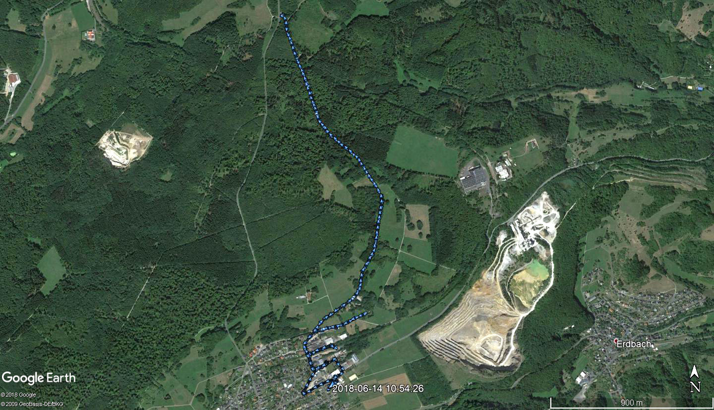 Strecke 6,4 km; VØ 5,1 km/h; Vmax 13,6 km/h (wie immer auf dem Rückweg in der Steigung im Wald an der Medenbachquelle )