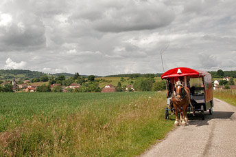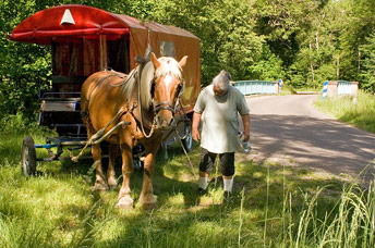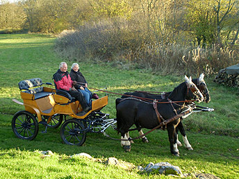 Jankid, Karlheinz, Elke und Jaron ### Das Bild unserer ersten Kutschfahrt, die wir ganz auf uns selbst gestellten gemacht haben: "Einmal durchs Erdbachtal". Ein ganz kleines, unser bisher überraschendstes, beängstigend begeisterndes, glückliches Fahr-Erlebnis. Dann war Herbst, Winter und wir hatten (noch) nicht den nötigen Mut, ein zweites Mal so viel Temperament anzuspannen. |