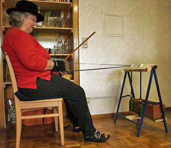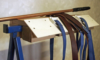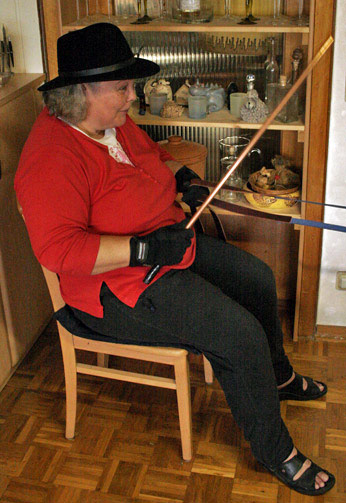 ![]() .... und von der freundlichen Sattlerin Susanne Jahn aus Herborn-Seelbach fachgerecht und originalnah gefertigten Spanngurt-Seel(achen?!)bach-Leder-Leinen. |