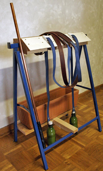 ![]() .... inklusive einer Kupferrohr-Peitsche, Sand-beschwerten "Pferdemaul"-Flaschen und einer Terrakotta-Umfall-Versicherung .... |