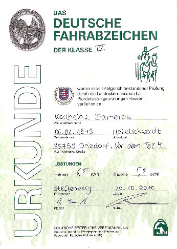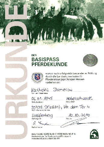 Die Urkunden ![]() Elkes Basispass-Urkunde ![]() Karlheinzs Basispass-Urkunde ![]() Das Basispass-Steckabzeichen ![]() Elkes Fahrabzeichen-Urkunde Klasse IV ![]() Karlheinz' Fahrabzeichen-Urkunde Klasse IV ![]() Das große Fahrabzeichen Klasse IV ![]() Die Fahrabzeichen-Klasse-IV-Anstecknadel |