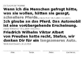 Alle Beteiligten, die allein diese drei Beispiele von Missgeschicken beim Kutschefahren heil überstanden haben, werden wohl in zwei Leben kein Hufeisen brauchen. Mehr Glück kann kein Mensch noch einmal haben. Der Pferdefuß des Kutschefahrens ist einerseits die Physik, wenn man sich ihrer nicht bewusst ist. Andererseits die Notwendigkeit, sich auf ein mächtiges Lebewesen einzulassen, das man niemals ganz verstehen kann, in das hinein zu fühlen man aber so weit wie möglich jederzeit mit voller, nicht ermüdender Konzentration und allen Sinnen gerichtet sein sollte, um auf jedes seiner arteigenen Signale so früh es geht und so angemessen wie nötig zu reagieren, um ähnliche Katastrophen zu vermeiden. In diesem Sinne, allen Kutschen-Freunden weiterhin alles Glück dieser Erde und: |