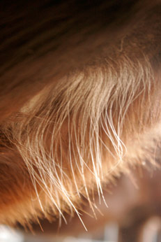 Ein Tag mit einem Pferd Praxis der Pferdehaltung im ersten "Lernjahr" Institut: Saalbach-Hof in Breitscheid Die folgende Schilderung gibt jeweils den +- momentanen Erkenntnisstand von uns beiden wieder = ist also nur mit Vorsicht zur Nachahmung empfohlen. Garantie für die Richtigkeit wird in keinem Fall übernommen. Elke & Karlheinz Damerow ▪ Koppeln ▪ Vertritt Ein wahrhaftes Ehrenwort Tierhalter-Profis kennen es nicht anders: Jeden, mindestens Morgen und Abend heißt es: Füttern, Pflegen und Stall reinigen. Dasselbe gilt natürlich für den Laien, der sich die Übernahme der Verantwortung für ein Tier als Freizeitbeschäftigung „angetan“ hat. In jedem Fall ist damit mehr als nur ein loses Versprechen verbunden, das Frau/Mann je nach Lust und Laune mal halten darf, mal nicht. Der Inhalt dieses Versprechens lautet: Siebenhundert-und-dreißig Mal pro Jahr (in Schaltjahren zweimal mehr) ein bis… Stunden Sich-Kümmern um sein Pferd. Wer dieser Verpflichtung nicht in eigener Person nachkommen will oder kann, der muss eine entsprechende Dienstleistung (meist)mehr, (selten)weniger „preiswert“ = kostenpflichtig von einem professionellen Anbieter erwerben. Darüber hinaus ist damit der Verzicht auf eine wichtige Gelegenheit verbunden, emotionale soziale Kontakte, Vertrauen zu seinem Sport- und Freizeitpartner Pferd aufzubauen und zu pflegen. In jedem Fall ein (lebens-) wichtiger Sicherheits-Faktor und damit auch entscheidender Bestandteil sportlicher Erfolge. Sich ein Pferd „leisten“ zu können ist also nicht primär eine Frage des Geldes sondern vor allem der Zeit, die man neben der Erledigung unabwendbarer Lebenserfordernisse mit ihm verbringen kann. So sind wir, Elke und ich, Karlheinz, als Pensionisten, entsprechend dem Wegfall des zeitlichen Aufwands für die Berufsausübung, in der privilegierten Lage, dieser Facette der Liaison mit einem Pferd ohne Einschränkungen nachkommen zu können so lange es unsere Gesundheit erlaubt. Voraussetzung: Gesund sein, Wer nun aus dem Bauch heraus meint, angesichts der Regelmäßigkeit, mit der „Pferde-Pflege“ zu leisten ist, sie verlange und fördere zugleich und vor allem die allgemeine Ausdauer, der mag staunen, wie richtig er damit liegt, zu mindestens in meinem Fall, dem von Karlheinz. Nach fünf Monaten mit der im Folgenden beschriebenen Pflegeroutine war mein Körpergewicht von 95 auf 80, also um durchschnittlich drei Kilo pro Monat gesunken. Meine Körpergestalt näherte sich in unübersehbarer (beängstigender?) Weise der eines Marathonläufers. Die nahe liegende Befürchtung, irgendein Krebsgeschehen könnte die Ursache dafür sein, war denn auch einer der Gründe, warum ich mich fachärztlich von Kopf bis Fuß untersuchen ließ. Das sehr erleichternde Ergebnis: Negativ. Der Teil des objektiven Übergewichts 95 Kilo bei 1,84 m Körpergröße, BMI 28,1 , der aus Fett bestand, ist offensichtlich zur „Befeuerung“ der zusätzlichen körperlichen Aktivitäten verbrannt worden. Nach einem kurzzeitigen Durchsacker auf 74 Kilo, wohl verursacht durch einen, im Ansatz erkannten, ersten Rheuma-Anfall(?!), bin ich inzwischen wieder bei 81 Kilo angelangt, meinem „Jung-Mannen-Kampfgewicht“ als 20-30jähriger. Wer also im Pensionsalter nach einer Methode sucht, „Gewicht zu machen“, dem kann ich nach diesen Erfahrungen empfehlen, sich ein Pferd zuzulegen und es eigenhändig zu pflegen. Eine solche Entscheidung befreit nicht nur von „überflüssigen“ = nicht lebensnotwendigen finanziellen Mitteln, sondern offensichtlich auch von entsprechenden Teilen eigener Biomasse. Wie die folgende Schilderung unserer täglichen Pferde-Pflege-Routine verdeutlicht, besteht sie eigentlich in einer relativ mäßigen, dafür aber absolut regelmäßig ausgeübten Steigerung körperlicher Aktivitäten. Die Auswirkungen, die sie schon in so relativ kurzer Zeit auf die anabole/katabole (Körpersubstanz aufbauende oder abbauende) Stoffwechsellage eines männlichen Mitte-Sechzier-Körpers haben, kann man dafür aber getrost als beeindruckend bezeichnen. Sollte Elke Lust und Zeit finden, wird sie über ihre entsprechenden Erfahrungen berichten. Unsere pferdeflegerische Morgen-Routine Gegenstand unserer Bemühungen sind zwei Gelderländer Rappwallache, Jaron und Jankid. Da wir gelernt haben, dass ein wesentlicher Teil arteigener Bedürfnisse von Pferden ein regelmäßiger Tagesablauf ist, füttern wir so pünktlich wie wir es hinbekommen, morgens um acht und abends eine Stunde vor dem Dunkelwerden, spätestens um 18.30 Uhr. Entsprechend beginnt der Tag für Elke um 6.30 und für mich, Karlheinz, um 6.45 Uhr (bitte nicht fragen, warum (nicht umgekehrt!)?) mit den üblichen persönlichen Morgen-Ritualen. Um 7.55 Uhr fahren wir die 6,5 Kilometer von Heisterberg nach Breitscheid zum Hof der Familie Saalbach, wo wir unseren Lieben dann das „Frühstück“ servieren. Wenn man die ehernen Regeln der Pferdepflege Kunst ganz genau nimmt: Erst das Pferd, dann der Mensch!, dann verstoßen wir dagegen. Aber unter den gegebenen logistischen Voraussetzungen bleibt uns nichts anderes übrig, es sei denn, wir würden das Haus in Heisterberg verkaufen und als Untermieter bei den Saalscheids in Breitscheid einziehen. Mal sehen, was die sagen würden, wenn das alle Einsteller von ihnen erwarten würden?! Der „erste Gang“ des Frühstücks besteht aus: • je 1,5 Joghurt-Becher-Füllungen Pferde-Müsli (am liebsten die Kräutervariante; keinen Hafer mehr, auch für Jankid), etwas Mineral- und Hefe-Granulat, ein Schuss Magnesium und bei Bedarf B-Vetsan (ein homöopathisches Mittel gegen Infektionen der Atemwege). # # # In der Übergangszeit zwischen nicht mehr gefrorenem Boden und dem Anweiden, wenn aus Vertritt-Gründen die Nutzung der übrigen Weiden nicht mehr/noch nicht wieder möglich ist, dann erhalten die Beiden nach dem dann "Ersten Frühstück", auf einer der beiden Winter-Koppeln an der Medenbacher Straße, bis elf Uhr Ausgang zum Beine-Vertreten inklusi