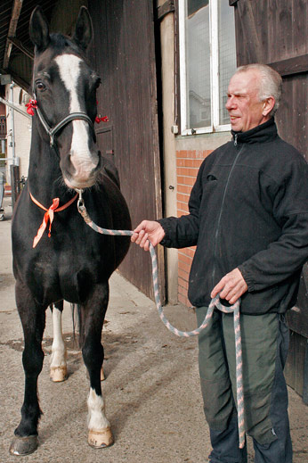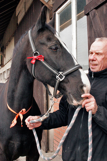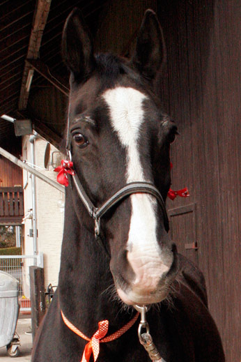 Jaron ist nun ebenfalls volljährig Wir feiern den 21sten Jahrestag der Geburt unseres zweiten Königlichen Warmblut Pferdes aus den Niederlanden Selffulfilling prophecies? Vor 35 Tagen, also genau fünf Wochen, feierten wir den 21sten Geburtstag von Jongkind ("Junges Kind"), dem Sohn seiner Mutter Windekind ("Kind des Windes") und seines Vaters Droomwals ("Traumwalzer"). Wenn man das von einem Pferd sagen kann oder darf: Jongkind, oder Jankid, wie wir ihn heute erleben, ein Traumtänzer, Luftikus, Charmeur, Communikator und ewiges Kind. Ist es nicht verblüffend, wie das (scheinbar?) zusammen „passt“. Klar, für uns, die wir zur kleinen Gemeinde bekennender Anhänger der Aufklärung gehören, bedeuten Namen natürlich nichts als „Schall und Rauch“. Schon gar, wenn es um Namen geht, die gerade eben geborenen Lebewesen von emotional innig mit ihnen verbundenen Menschen verpasst wurden, häufig also aus ganz anderen als vernünftigen Beweggründen. „Aber“, so meldet sich der kleine, esoterisch verführbare Schlingel da ganz hinten in der Ecke unseres Bio Computers, „könnte es damit nicht doch so etwas auf sich haben wie ‚sich selbst erfüllende Prophezeiungen‘“? Sein ganzes Leben lang, pausenlos mit einer, an sich virtuellen Eigenschaft etikettiert, wie sie der Name auszudrücken scheint, führt das nicht schließlich im Wechselspiel zwischen Erwartungen der personalen Umwelt und den Entwürfen der eigenen Persönlichkeit zur Ausbildung einer entsprechenden, dann sehr realen Eigenschaft? Klingt doch äußerst wahrscheinlich vernünftig, oder? Wenn das denn meinetwegen unter Menschen wirklich so oder so ähnlich funktionieren könnte, wie sollte das aber bei einem Tier gehen? Zumal bei einem Pferd, das zwar ganz und gar nicht unintelligent ist, das aber wohl recht unwahrscheinlich etwas mit abstrakten Begriffsinhalten der menschlichen Sprache anfangen können dürfte, wie Humor, Zuverlässigkeit, Konzentrationsfähigkeit, Mitarbeitsbereitschaft, Vertrauen, Empathie oder gar Liebe. Oder sollte es tatsächlich etwa so sein, dass die möglicherweise im Gehirn von Menschen ablaufenden „selffulfilling prophecies“, auch im Zusammenhang mit dem Namen eines Pferdes und dessen Befrachtung mit irgendeinem Sinn, in einer Art Tandem- oder Parallelprozess, quasi über den Äther, in das Persönlichkeitsprogramm eben dieses Pferdes geschrieben werden? Frag nicht wie wie auch immer. Jaron hat Geburtstag Was einem doch nicht alles durch den Kopf geht, und was man nicht alles für möglich hält, wenn die Mutter Varonica („Die Bringerin des Sieges“), geschwängert durch wiederum Droomwals (Traumwalzer), am 23. April 1991 ebenfalls einen Sohn gebiert, dem ihre Menscheneltern den Namen Jaron geben. Im Hebräischen bedeutet das angeblich so viel wie: „Der, der glücklich sein wird“. Eine zweite vermutliche Namensherkunft aus dem Altgriechischen lautet übersetzt: „Der, der den Göttern geweiht ist“, oder:„Der, der heilig ist“. Beide Inhalte werden den Züchtern in Gelderland, als sie ihren neugeborenen Hengst vor 21 Jahren mit dem ganz einfach schönen Namen Jaron tauften, sehr wahrscheinlich ebenso wenig bewusst gewesen sein wie mir, bevor ich sie jüngst geguuglt habe. Ist es nicht umso verblüffender, wenn aus dem gelegten Sohn einer Mutter Varonica, die, die in ihrem Namen „den Sieg bringt“, ein äußerst erfolgreiches Sportpferd wird, Jaron, „der, der glücklich sein wird“? Der, der tatsächlich das Glück hat, „seine Menschen“ nach geduldiger und gründlicher Erprobung des Vertrauens seinerseits glücklich zu machen. Nicht zuletzt durch seine ernsthafte (preußische) Bereitschaft zur Mitarbeit, sein „ehrliches“ Verhalten ohne Tücke, Hinterhalt und Boshaftigkeit. Was man in letzter Konsequenz und der Summe dieser sympathischen Eigenschaften ohne Übertreibung auch als bedingungslose Treue bezeichnen darf. Was „den Göttern geweiht“, eventuell sogar „heilig“ zu sein betrifft, so ist wohl altgriechisches Pathos, übertriebene Form des Ausdrucks im Spiel, bei der feierlichen Umschreibung des griechischen Namens Hieronymos: Jaron, der, durch den das Göttliche in unsere Welt gelangt, durch seine Gestalt, die Kontrast ist zum Profanen, Alltäglichen und Gewöhnlichen. Etwas von seiner Ernsthaftigkeit, seinem beeindruckend unmittelbaren Verpflichtet Sein ihm gestellten Aufgaben gegenüber mir (ge)fällt dazu der Begriff „preußisch“ (ein) einer der vielen positiven Charakterzüge Jarons, seines Interieurs, könnte sich (also garnicht mal so) entfernt mit dieser Auslegung der Begriffe „heilig“, „den Göttern geweiht“ zur Deckung bringen lassen. Nach so viel hoch“trabender“ Erörterung zum Thema: Jaron, der Name eines Pferdes und sich selbst erfüllende Prophezeiung(en), sagen wir Dir in ruhigem "Schritt": Herzlichen Glückwunsch, Jaron. Mit drei Flaschen Malzbier, die Du mannhaft und durchaus nicht nur - wie wir Dich kennen - erstmals und damit äußerst vorsichtig genossen hast, mit einer Reihe von Fotos, für die Du gelassen professionell posiertest, animiert von den beiden Cheerleadern Jutta und Vanessa und mit einem (stolz getragenen?) oranjefarbenen Band um den Hals und roten Herborner Bären Schleifchen am Kopf.... und natürlich nach sieben-tausend-sechs-hundert-neun-und-sechzig gelebten Pferdetagen bist Du nun "volljährig". Was immer Du Dir wünschst, was das für Dich bedeuten könnte, möge in Erfüllung gehen. Wir wünschen Dir und uns unverschämt viel Gesundheit und noch viel, viel gemeinsame Zeit, in der es uns dann aber möglichst bald gelingen möchte, gemeinsam mit Dir und Jankid in altersgemäß ruhiger, sicherer Kutschfahrt durch den Hohen Westerwald zu zuckeln. Deine Elke und Karlheinz |