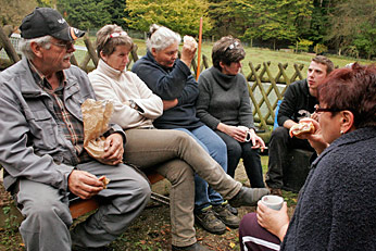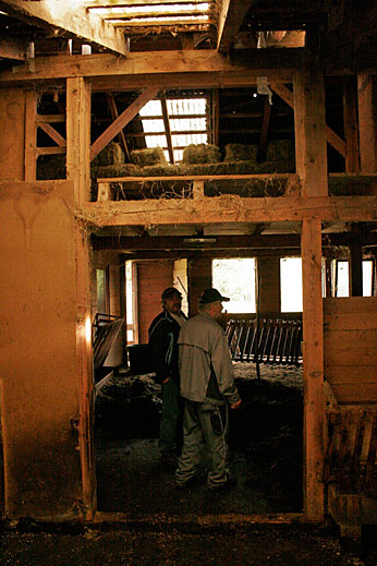 Einer griechischen Sage nach nahm Herkules den Auftrag an, seit 30 Jahren nicht mehr gereinigte Ställe von 3.000 Rindern innerhalb eines Tages auszumisten. Augias, der Auftraggeber, versprach ihm dafür 300 Rinder, in der Gewissheit, dass selbst dieser Halbgott und Held so eine Aufgabe nicht bewältigen könnte. Herkules brach die Fundamente des Stalles an einer Seite auf, leitete das Wasser zweier Flüsse hindurch und erledigte so den Auftrag. Augias verweigerte ihm den versprochenen Lohn und jagte ihn sogar aus dem Land. Herkules kehrte aber zurück, tötete unter anderen auch Augias und begründete zur Feier des Sieges die "Olympischen Spiele" … ### Zur Feier dieses Ursprungs der "Olympischen Spiele" der Antike und der Ankunft seines „Enkels“ El Paso über den Dächern von Dillenburg, hatte uns Peter denn auch am dreizehnten Tag des zehnten Monats im Jahre Zweitausendundzwölf in eines der Täler von Niederscheld gerufen. Die sportliche Aufgabe, die er dort für uns bereit hielt, war der von Augias für Herkules ganz und gar nicht unähnlich. Der Mist in diesem Stall stammte ebenfalls von Pflanzenfressern, Gott-sei-Dank von nicht ganz 3.000 und von nicht ganz so großen wie wohl den Rindern der griechischen Sage und auch nicht von ganzen 30 Jahren. Peter überfordert halt seine Sportler nicht. Er weiß ja, dass wir keine Halbgötter sind (wer kann sich heute noch solche Eltern leisten?) und auch keine Helden (der Arbeit?!). Peter war mit uns schon nach weitaus weniger als 24 schweißtreibenden Stunden zufrieden, als immerhin ein Teil des Stallbodens wieder das Licht der Welt erblickte, als einstmals wohnliche Räumlichkeiten wieder genau dies für die Zukunft versprachen, als der Stauraum unter dem Dach, sorgfältig arrangiert, den Zugang zu einer Vielzahl undichter Stellen und zur ernsten Erkenntnis frei machte, dass es aller höchste Zeit ist für eine Dachsanierung. Bei Kaffee, Kuchen, belegten Brötchen und heißer Fleischwurst klang für uns "Peters Feier zur Erinnerung an einen möglichen Ursprung der Olympischen Spiele der Antike in Niederscheld" gegen halb sechs aus. Eigentlich ist es doch seltsam: Hätte Augias für die Stallreinigung bezahlt, dann hätte Herkules ihn möglicher Weise am Leben gelassen, und… wir hätten nicht an "Peters Olympischen Spielen" teilnehmen können. Wir hätten ihm ganz prosaisch beim Ausmisten eines total versifften Schafstalls geholfen. |