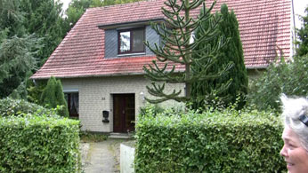 Eschenhausen 23, Elke Ich hatte mich telefonisch mit Herbert Schmidt für Samstagnachmittag zum Kaffee verabredet. Freitagabend konnte also noch keine schickliche Audienz-Zeit sein. Da sich hinter den Fensterscheiben des inzwischen vollständig verklinkerten Hauses und auch sonst nichts rührte, blieb es beim Staunen über eine gärtnerische Umrahmung an dessen Nordseite mit Rhododendren und Co. Hier sind mir nur zwei alte Bäume in Erinnerung. Da, wo vor fünfzig Jahren der Zaun einer Kuhweide den Weg an Haus und Stall vorbei zum kleinen Wald dahinter begrenzte, ragt heute die „Pest des Landes“, Mais, übermannshoch empor und versperrt den Blick zur Osterbinder Straße. Wir haben noch Zeit bis zum Einchecken bei Pankallas in Neubruchhausen. Also kann es ja nicht schaden, „unseren“ Wald schon mal allein, auch ohne Herbert, in Augenschein zu nehmen. Für viele Jahre war dieses Wäldchen „unsere“ Welt, Reinhards und Kamals Spielplatz gewesen. "Kamal" war übrigens mein erster Name, den Reinhard generiert hatte, um seinem Stimmbildungsapparat in feinfühliger Rücksichtnahme die vokalen Zumutungen von „Ka“ „Arrl“ „Hei“ „Ntsss“ und das auch noch ohne Pausen hintereinander zu ersparen. Kallemann kam dann später mit zunehmender phonetischer, wie den Sprachschatz unserer Eltern erweiternder Kompetenz meines „kleinen Bruders“ hinzu. Wer mich kennt: Den Kallemann verwende ich gerne, wenn es die Urheberrechte Reinhards erlauben. Was sich schon auf dem Weg von der B51 über Osterbinde angekündigt hat, wird hier noch sinnfälliger und sollte sich über die gesamte Begegnung mit Eschenhausen weiter verstärken: Die topographischen Abmessungen meiner Erinnerungen stimmen zwar relativ, aber nicht absolut. Richtungen, Winkel sind unverändert, Häuser sind dagegen kleiner und Wege kürzer. Nur die Pflanzen, besonders die Bäume scheinen noch immer so beeindruckend groß zu sein. Einige, besonders die damals kleinen, sind mächtig gewachsen. Macht nichts, stört in dem bekanntermaßen glorifizierenden und emotional weichspülenden Prozess, den Erinnertes beim Erinnern durchläuft, nicht die Bohne. Ganz im Gegenteil, Wege werden wie von Zauberhand, durch das Automobil noch beträchtlich unterstützt, altersgerechter, viel weniger anstrengend, und an ihrem Ende bleibt auch noch viel mehr Zeit übrig, als vor sechzig Jahren, wo sie Bar-Fuß oder per klapprigem Fahrrad zurückgelegt wurden. Der vordere Teil des Wäldchens kommt mir irgendwie verändert vor. Schmidts Schuppen war doch viel größer, oder ist er das überhaupt noch? Unser Holz-, Ziegen-Lotte- und Schweine-Macker-Schuppen ist nicht mehr da. Die Bäume, Buchen und Eichen von beachtlicher Statur, scheinen aber ganz die selben, beeindruckend. Auch der nach Südwesten das Wäldchen abschließende Erdwall ist noch da, wie das Wiesenstück dahinter zwischen der Eschenhäuser Beeke, die am südlichen Waldrand vorbeifließt (kann man eigentlich in diesen Septembertagen 2009 nicht sagen: vorbeisickert; Es ist sehr trocken) und ihrem Nebenbach von Norden aus Richtung Karrenbruch. K! Elke macht Fotos mit der Canon, während ich mich mit dem Camcorder in Verlängerung des erwähnten Erdwalls durch ein Gestrüpp aus Brennnesseln, Disteln und Maisstangen am Ende des erwähnten Feldes arbeite, da wo ehemals das Südwestende der Kuh-Weide nördlich von Schmidts Haus war. Nun beherrscht hier ein gigantisches Schlehengebüsch den Raum zwischen Schmidts Wäldchen und der Karrenbrucher Beeke. Warum zwängt sich eigentlich ein grauer Mitsechziger in dieses Dornengewirr hinein, tritt Teile des alten Weidenzauns nieder, schlängelt sich vorbei an einer ca. dreißigjährigen Eiche, deren Krone das Schlehengebüsch schon weit überragt, die also älter als dieses sein muss? Irgendwo hier, noch ein paar Meter weiter? muss meine alte „Geheim-Tresor-Eiche“ gestanden haben, deren schon damals hohles Innere „Schund- und Groschenheftchen“ vor Entdeckung und Zugriff durch die Eltern, vor allem die Muttel bewahrte. Und tatsächlich, da, ein von Verrottung zernagtes Gerippe eines kapitalen Baumstumpfs. Das müssen die Reste meiner "Akim-, Prinz Eisenherz- und Beowulf-Heftchen-Tresor-Eiche" sein. Danke, liebe Eiche, dass Du so lange auf mich gewartet hast. Nun magst Du gerne der längst zersetzten Zellulose der Schundheftchen folgen, die Du einmal in Deinem Inneren gehütet hast, in den ewigen Zirkus der Stoffe, vielleicht nicht nur in die Haarwurzeln der gierigen Schlehen. Sicher lebt auf diesem Weg schon ein Teil von Dir gemeinsam mit meiner Kindheits-"Literatur" in Deinem Eichenkind ein paar Meter nebenan weiter. Eine seltsam berührende, wie bizarre, aber auch irgendwie bezaubernde Szene des Aufeinandertreffens von Menschen-Kindes-Erinnerung und Pflanzen-Kindes-Gegenwart. Unsere beiden „Gärten“ an den Enden des Erdwalls an Schmidts Wäldchen sind durch Birkenleichen und Farngestrüpp gnädig renaturiert. Im südlichen „Garten“ erinnere ich die erfolgreiche Wasserjagd nach einem kleinen Maulwurf, der irgendwann seine durch Beekewasser überflutete Wohnung verließ und mir so in die Hände fiel, der ich nichts näher liegenderes im Sinn hatten, ihn, am Stummelschwänzchen festgehalten, als verblüffend effektive Loch-Buddel-Maschine zu missbrauchen, bis er, nach wie vor quietschfidel und lebendig, wenn auch wohl mit leicht geknicktem Maulwurf Stolz wieder entwischte. Über dem „Garten“ am Nordende erkenne ich noch die waagerechten Äste einer Buche, die wohl die Trapezstangen geliefert haben für die „Überraschung“ der Muttel. Mit: „Kuck mal, was wir können!“, ließen wir uns, in vier Meter Höhe auf einem Buchenast sitzend, beide rückwärts“fallen“, um, nur noch in den Kniekehlen hängend, fröhlich vor dem (hoffentlich gespielt!) entsetzten Gesicht der Muttel zu baumeln. Die fahrlässige Inkaufnahme eines Herzinfarkts der Mutter als Kinder-Spaß zu verzeihen, fällt selbst fünfzig Jahre später nicht ganz