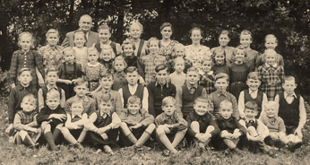 Blick nach Osten, vor Eschenhausen 34. Segelhorst oder Hilleboldt und Hadelers vor dem Lindschlag. Brigitte Hasberg ruft die Nachbarin von Nr. 34, Marianne Diedrichs, und siehe da: Sie ist selber auf diesem Foto ver“ewig“t, in der obersten Reihe die dritte von links, rechts neben Lehrer König. Sie kennt sehr viele Kinder auf dem Foto und ist bereit, mir die Namen bis morgen, also Samstagabend, aufzuschreiben. So sind sie nun mal, die Eschenhüser! Danke! Da das Kramen in alten Bilderkisten und Alben nun auch das Schulfoto von Reihards Einschulungs-Jahrgang 1953 zutage gefördert hat, soll es natürlich hier auch seinen Platz finden. Vielleicht finden sich ja auch noch der eine Eschenhauser, die andere Eschenhauserin, die sich an die fehlenden und/oder richtigen Namen erinnern und sich die Mühe machen, sie uns mitzuteilen. Danke schon mal im voraus! Informationen bitte an: e.k.damerow@t-online.de oder siehe: Impressum Bilder: Klick auf das folgende Bild vergrößert das Schulfoto 1951 mit fast(!) allen Namen der Schülerinnen und Schüler: Klick auf das folgende Bild vergrößert das Schulfoto 1953 mit fast(?!) allen Namen der Schülerinnen und Schüler. nach oben weiter zu: 07 - Der Lindschlag |